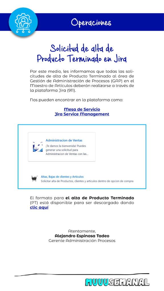 Solicitud de alta de Producto Terminado en Jira